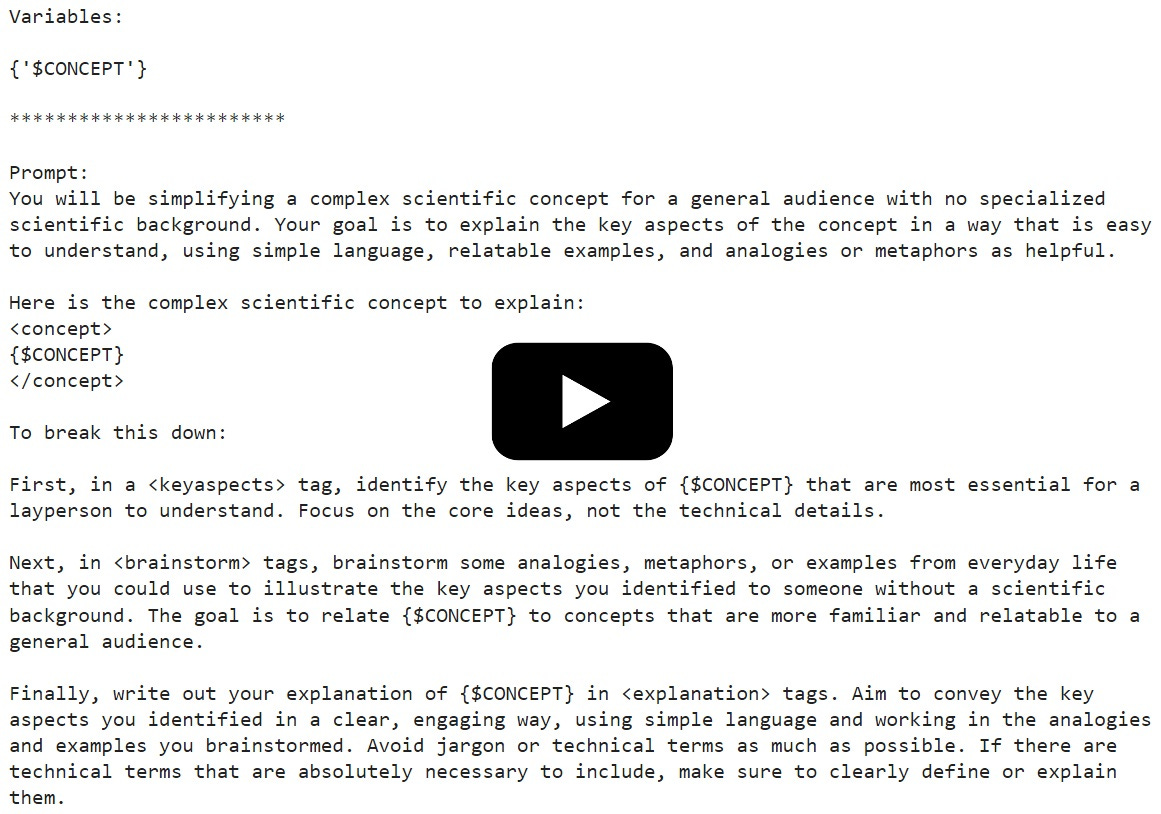 The above extract prompt template and variables function processes the response from Claude to extract a template for the prompt and identify any variables used. The print statements as well as pretty_print would yield the following text.