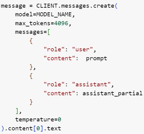 message = CLIENT.messages.create( sends the final prompt to Claude for processing.