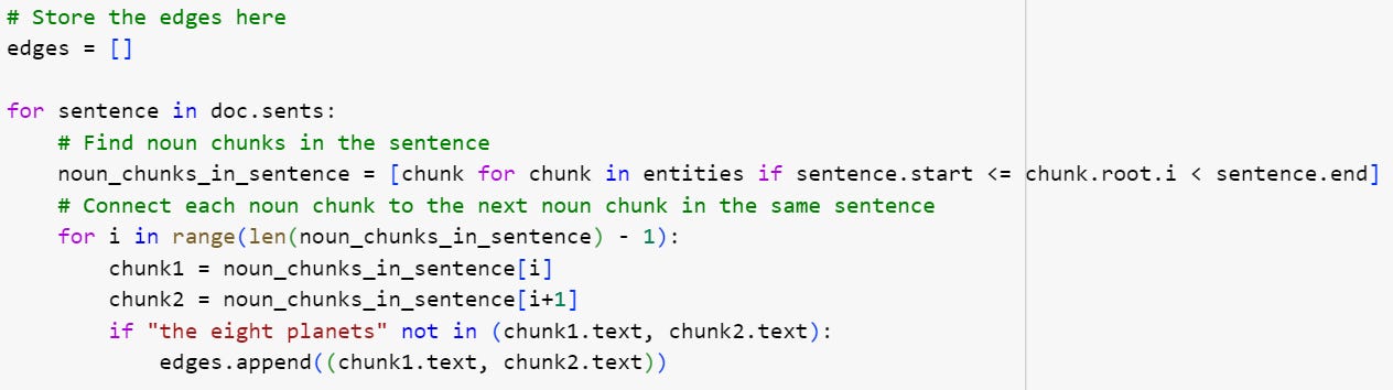 We then form edges between entities based on their co-occurrence in the same sentence.